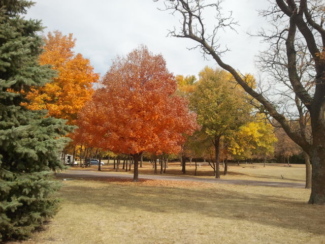 While it's hard to pretend that there were any net health benefits from it after all the food that was eaten at our annual family reunion last weekend, I did walk quite a bit Saturday and Sunday. We have the event each year at a campground on a lake in the Deep South of Minnesota, where the snowmobile is an acceptable mode of transportation to high school and camouflage goes with everything. It's always around the first of October so while the fall colors are pretty reliable, the temperature can range between 41 and 98 depending on the year. Minnesota is weird. This year, it was a gorgeous 75 degrees all weekend and just delightful. I bonded with various sisters, cousins, and nieces/nephews on walks along the trails and on the lakeshore.